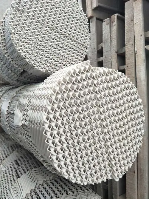 At the heart of ceramic structured packing’s superiority lies its meticulously designed geometric structure. Unlike random packings, which rely on irregular particle arrangements, structured packing features a periodic, ordered configuration—typically a series of parallel, inclined corrugated sheets. This design creates a uniform network of gas and liquid flow paths, maximizing the contact area between phases. For example, modern ceramic structured packing units often exhibit a high specific surface area of 250–500 m²/m³, coupled with a porosity exceeding 80%, ensuring that gas and liquid streams intermingle optimally. This enhanced contact promotes efficient mass transfer, with studies showing ammonia recovery rates increased by 15–25% compared to conventional random packings. The structured nature also minimizes channeling and dead zones, ensuring consistent performance across varying operating conditions, from low to high ammonia concentration feeds.